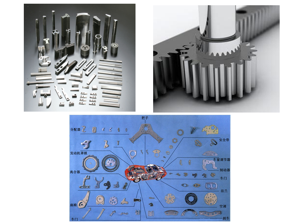鞋配件、安全帶扣、文具用品、鏈條、離合器、連接器、摩擦片、彈片、各種扣具、各類刀鋸、相機配件、園藝工具、電腦配件、汽車零配件、軍工用品、化工用品、家電配件結(jié)構(gòu)件等。